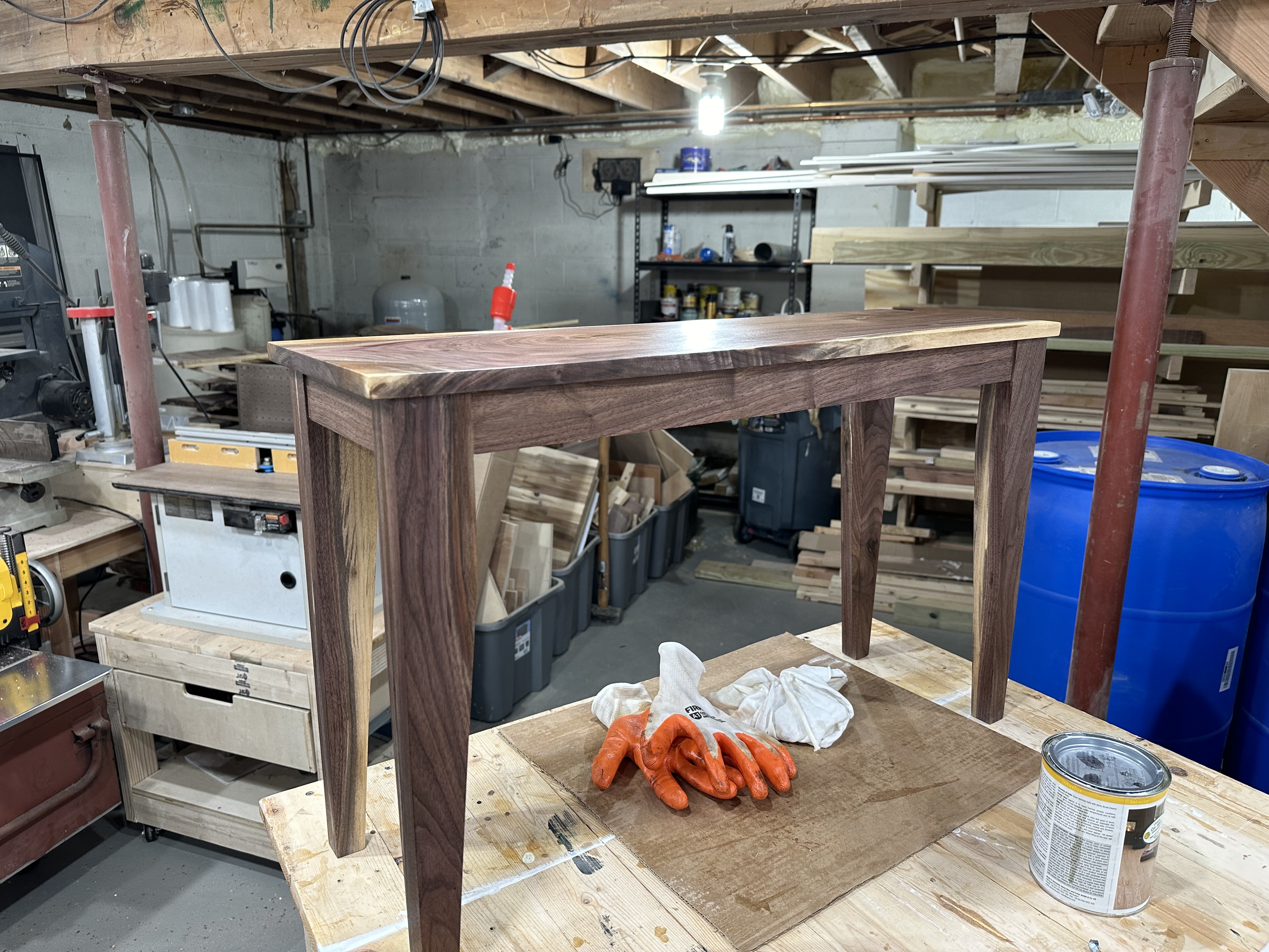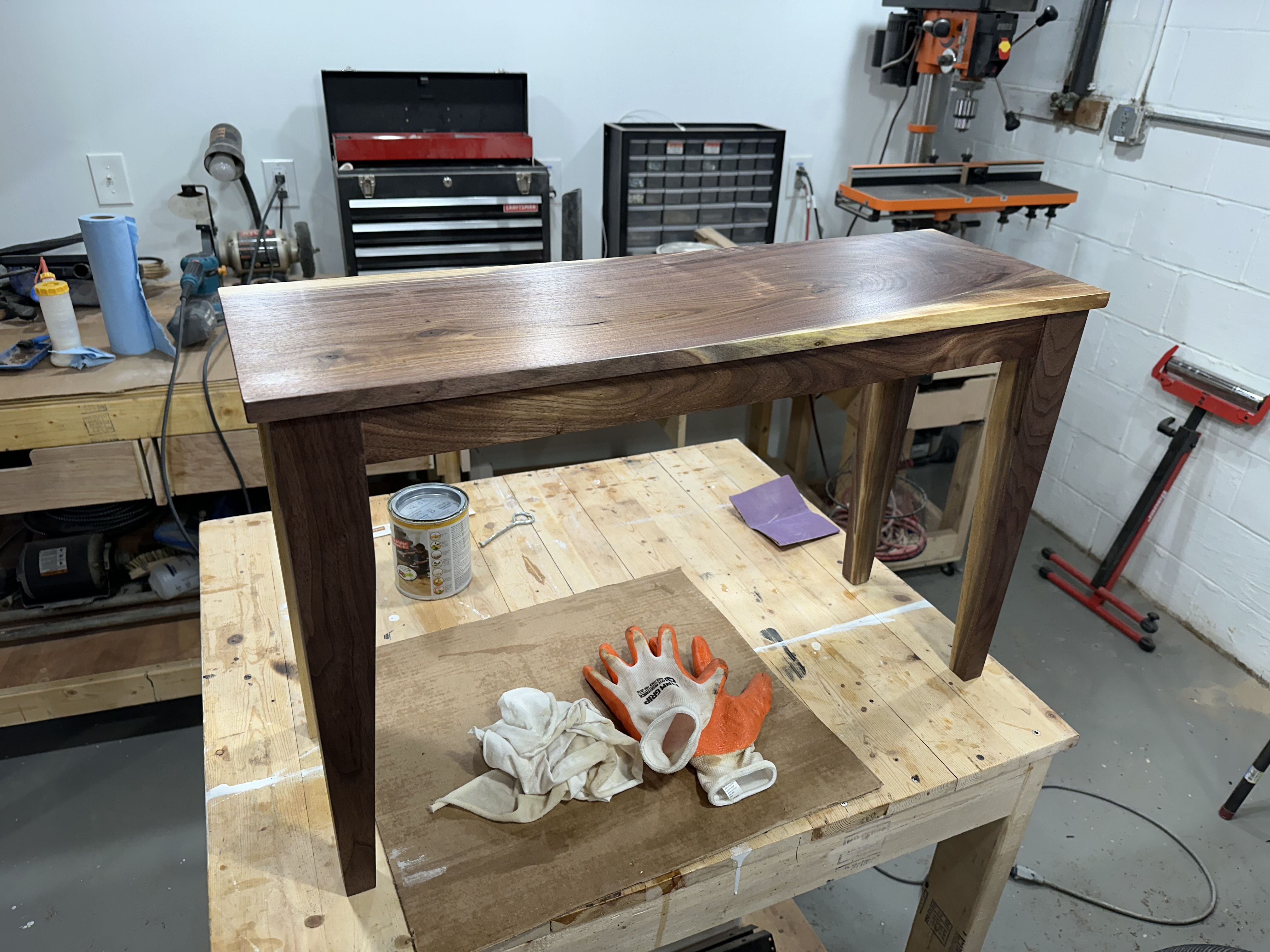 Small entryway bench made from air-dried black walnut. Finished with Osmo Polyx clear satin.